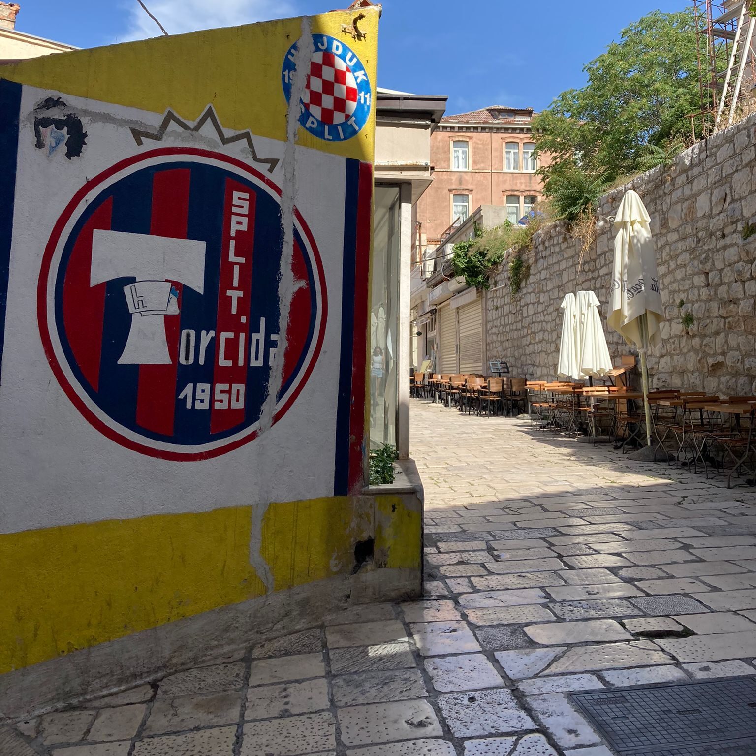 Arrivo alle 11 del mattimo ed il caldo mi offusca i pensieri. Mi cambio in un bar del centro per adattarmi al clima locale e mi immergo nel primo free tour, mentre attendo l’arrivo di V. La guida e’ un tipo alto e magro, il suo inglese e’ perfetto, ma quell’accento croato, rende la comprensione piu’ complessa. Ci bombarda con informazioni storiche di ogni tipo e per i 40 gradi locali, si fa davvero fatica a seguire. Lui pero’ sembra fresco come una rosa, nascosto sotto quel cappellino strano.